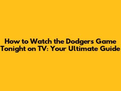 Dodgers Game Tonight: Your Ultimate TV Viewing Guide