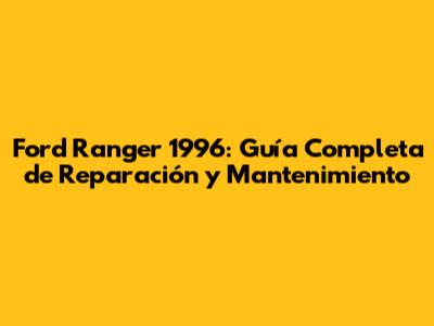 Ford Ranger 1996: Guía Completa De Reparación Y Mantenimiento