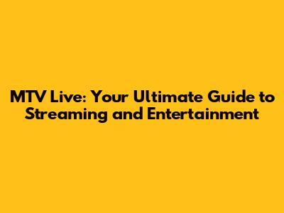 MTV Live: Your Ultimate Guide To Streaming And Entertainment